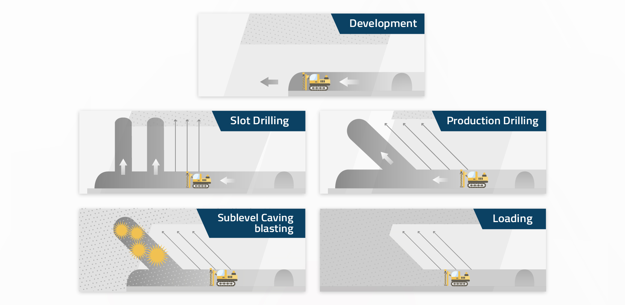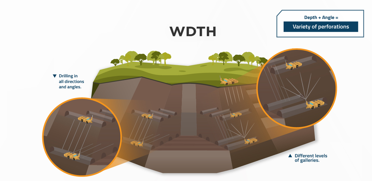 It carries out chimney preparation by means of the VCR method together with the diamond drilling system in order to be able to develop longer chimneys with minimum deviations.
