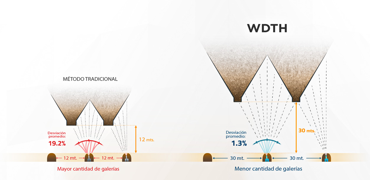 Desarrollo de chimeneas en taladros de gran longitud con desviación mínima para secciones de servicio, cara libre y extracción en subterráneo.