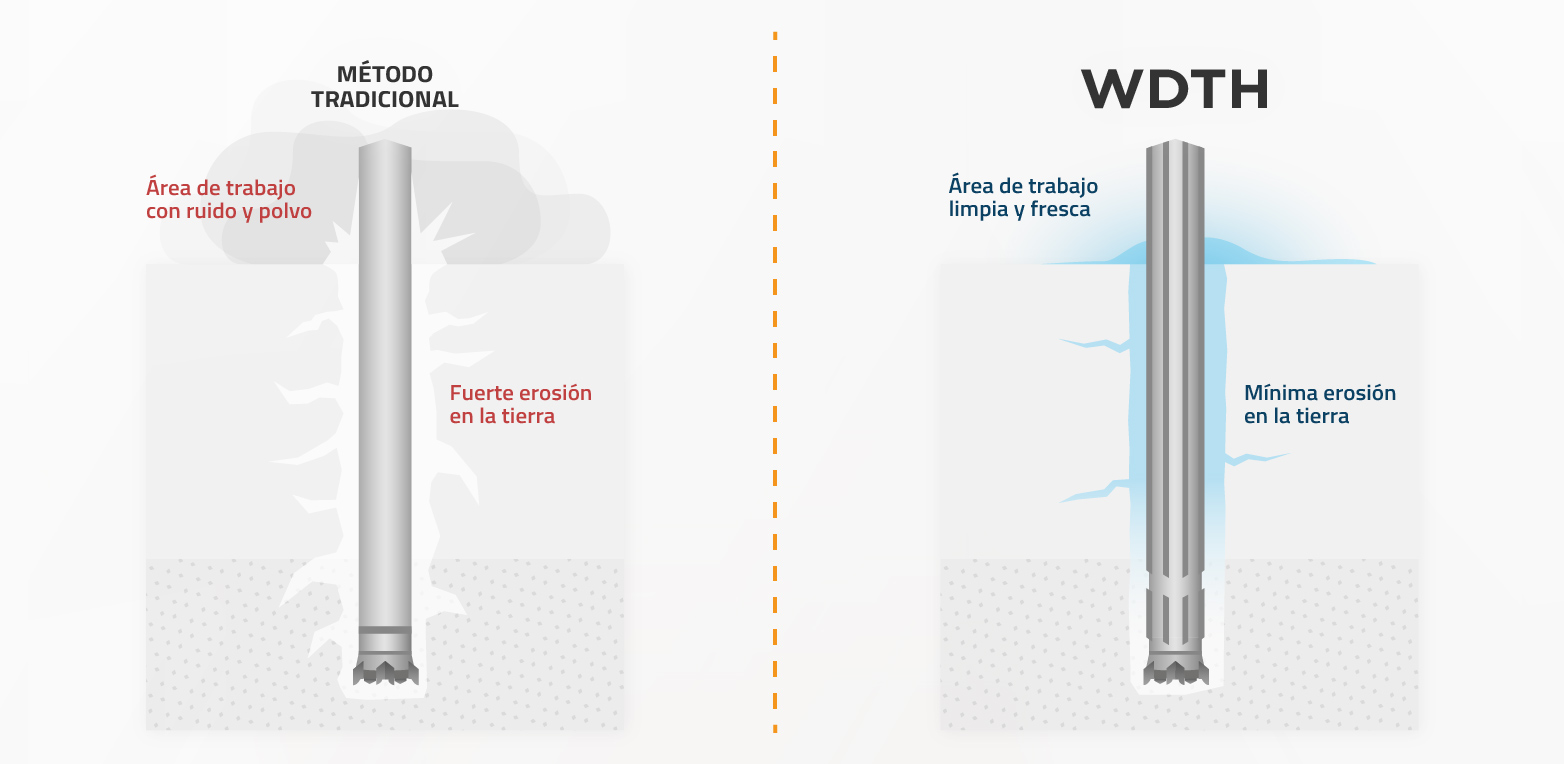 Sistema de perforación sin desviación potenciado por alta presión de agua para un alto rendimiento de operaciones de perforación en superficie y subterráneo.